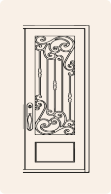 The Barcelona door channels Mediterranean grandeur through handcrafted ironwork and weathered textures. Its design captures the artistry of Southern Europe — expressive, sun-drenched, and unmistakably personal.